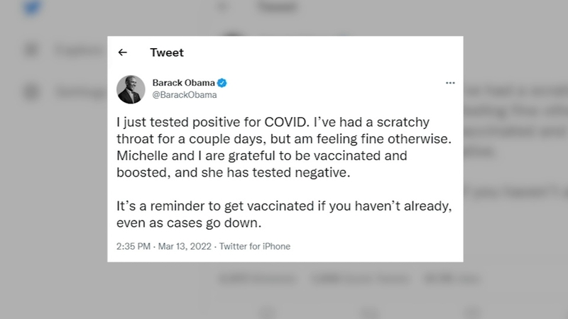 Barack Obama wabaye Prezida wa 44 wa leta zunze ubumwe za Ameika, mu ijoro ryakeye yatangaje ko yanduye icyorezo cya Covid-19 akoresheje urukuta rwe rwa Twitter agira ati: ''Maze gusangwamo Covid-9. Nari maze iminsi mfite uburibwe mu muhogo gusa ubu ndumva ntangiye kumererwa neza. Michelle nanjye twishimiye kuba twafashe urukingo. We nta cyorezo bamusanzemo''.