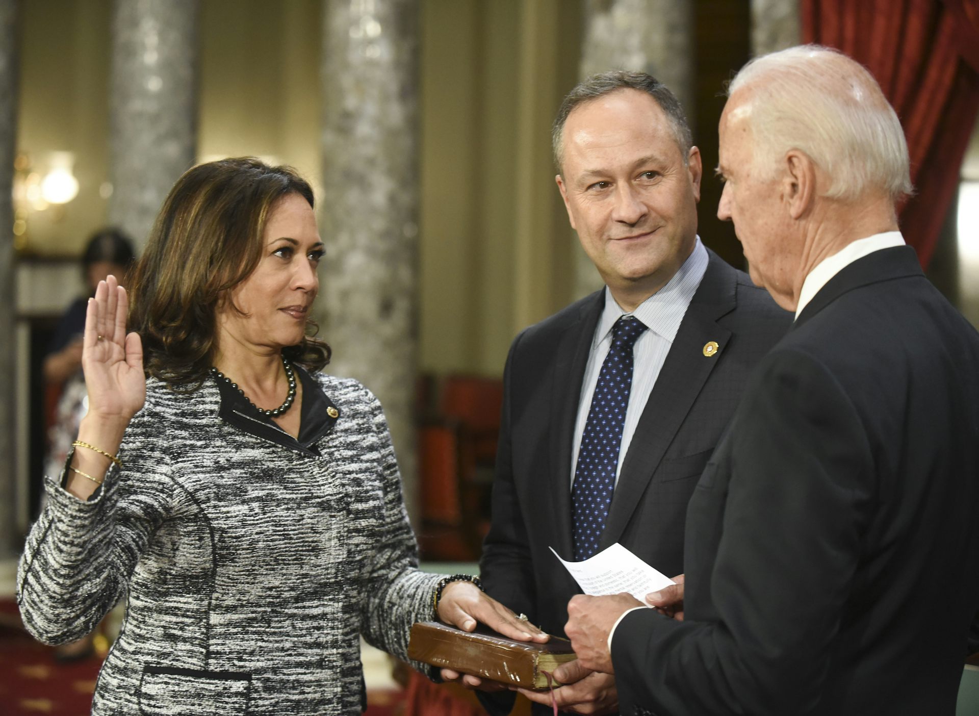 Ubwo Kamala Harris yarahiriraga kwinjira muri Sena mu 2017, indahiro ye yakiriwe na Joe Biden wari Visi PerezidaÂ